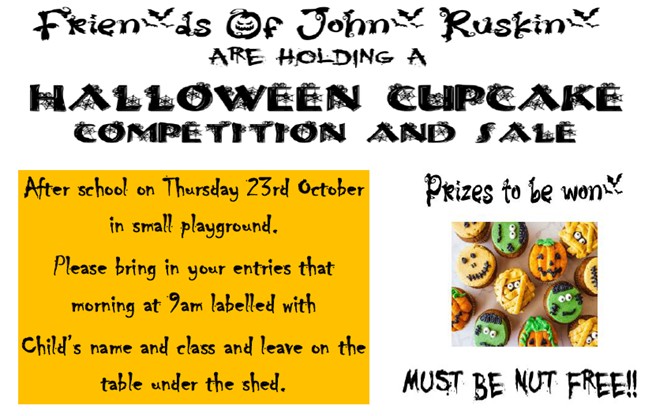 A huge thank you to everyone who took part in our Halloween Cupcake Competition! It was a fantastic success, and we loved seeing all your spooky and creative designs. Thanks to your support, Friends of John Ruskin (FOJR) raised an amazing ยฃ175!